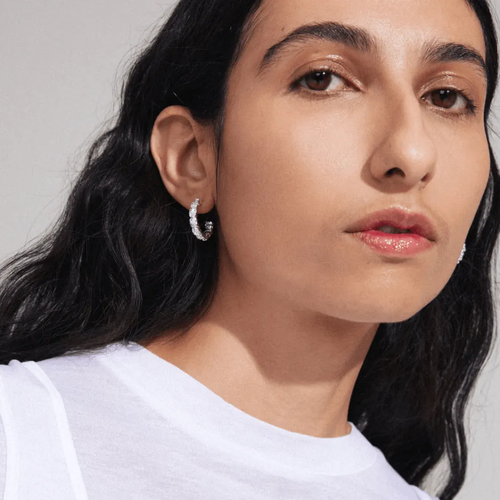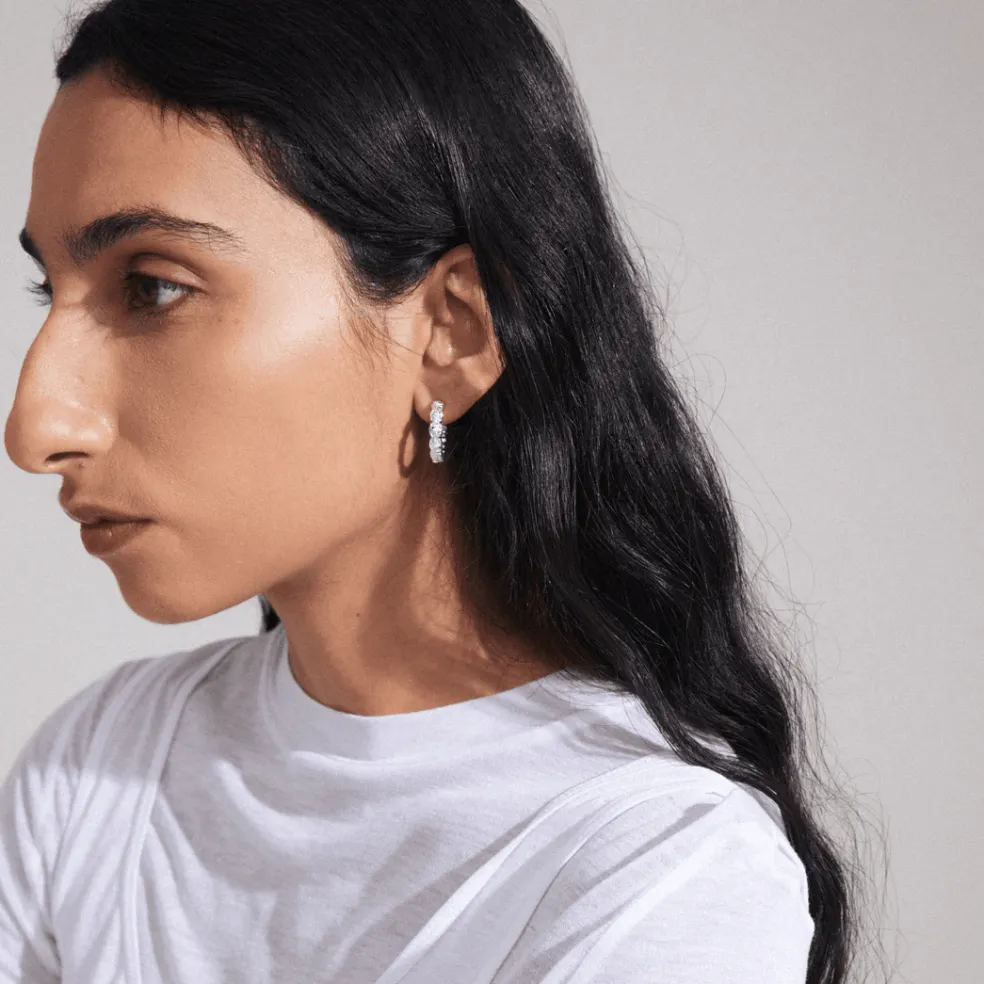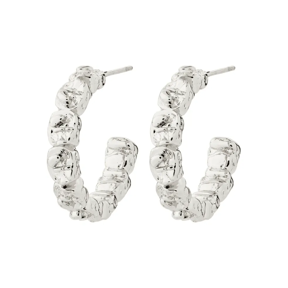 De silverpläterade halvbågarna ger en kraftfull känsla och lyfter din look med sin unika design. Modellen heter Scottie och kommer från varumärket Pilgrim.