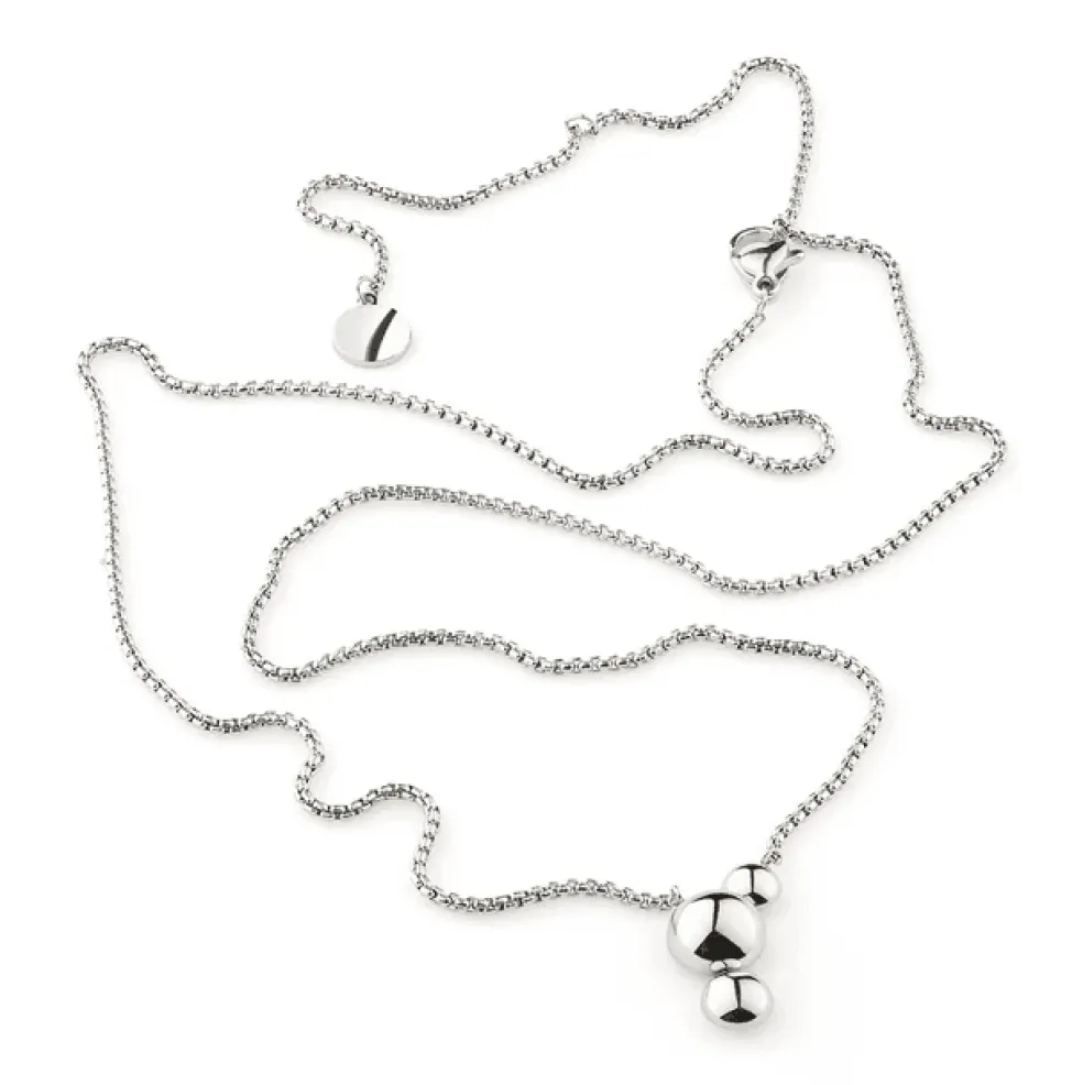 Liten men iögonfallande – halsbandet Stella i stål är en modern tolkning av tidlösa former med en skandinavisk "Scandicool" känsla. De tre polerade halvsfärerna ger en flirt med 60-talets futurism, samtidigt som designen är stilren och lätt att bära.
