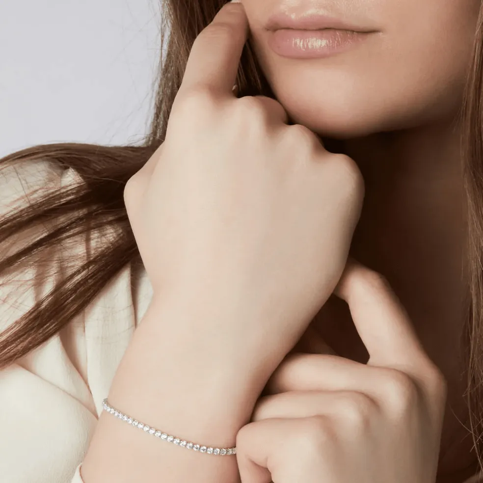 Låt din stil stråla med detta exklusiva tennisarmband från Sif Jakobs – en perfekt kombination av lyx och enkelhet. Armbandet är tillverkat i 925 sterlingsilver och förädlat med en rhodiumplätering, vilket ger en vacker lyster samtidigt som det skyddar mot oxidering – du slipper alltså putsa ditt silverarmband!