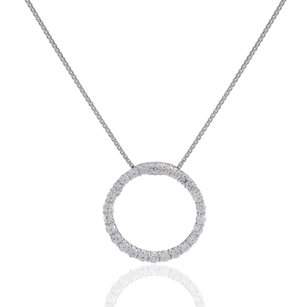 Biella är ett kortare halsband som tar plats på ett elegant och stilsäkert sätt. Halsbandet är gjort av 925 Sterling silver och har en cirkel med Zirconia kristaller i vitt. Det gnistrar och glittrar från smycket på ett livfullt sätt. Hänget är fäst i kedjan vid två punkter. Det gör att den vackra cirkeln hamnar rätt även då du rör på dig. Det betyder att effekten av de glittrande stenarna blir maximal.