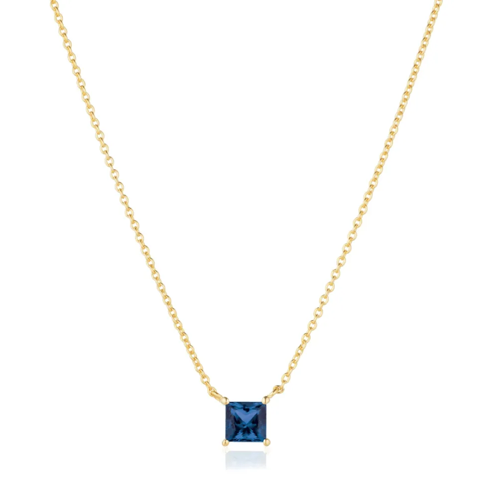 Halsband i 18 karat förgyllt Sterlingsilver med polerad yta och handplacerad facettslipas blå zirkon.