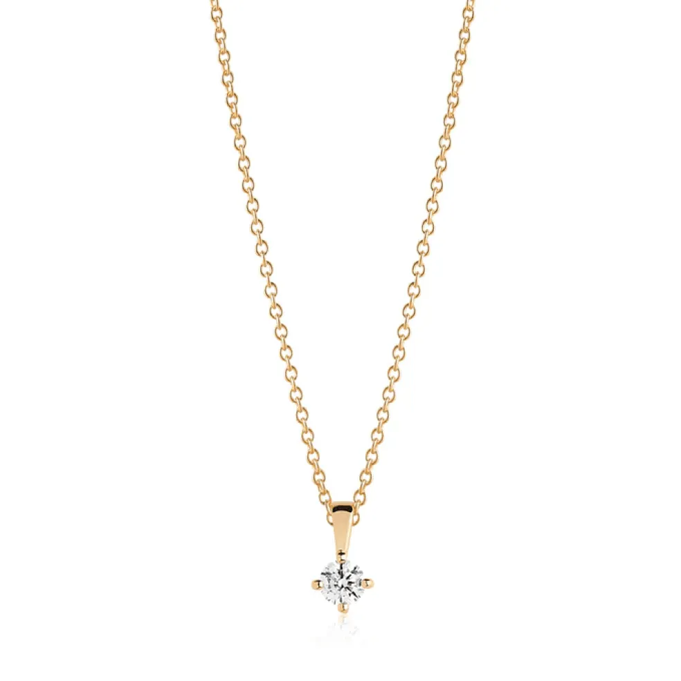 Kort halsband med en liten gnistrande kristall på 0,4 cm, modellen heter Princess och kommer från varumärket Sif Jakobs, ses här i förgyllt silver.
