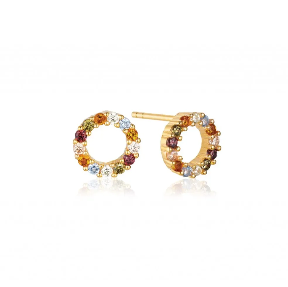 Små runda kristallklädda örhängen från varumärket Sif Jakobs, tillverkade i guldpläterat sterlingsilver med zirkoniastenar i mixade färger.