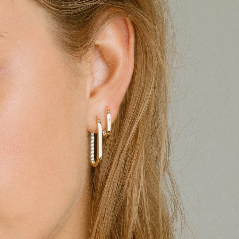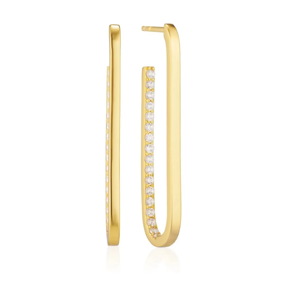 Långa örhängen i äkta 18 karat guldpläterad silver med polerad yta och för hand placerade zirconia stenar.