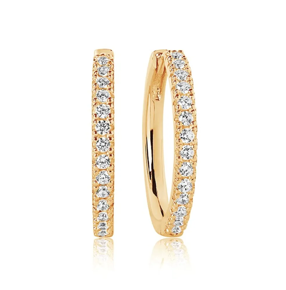 Medelstora creolörhängen i 18karats guldförgyllt silver med klara zirkonier.