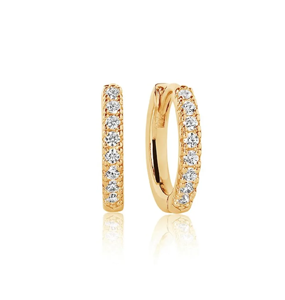 Tillverkade i 18 karats guldförgyllt silver, utstrålar dessa örhängen en aura av lyx som få kan motstå. Varje örhänge är smyckat med klara zirkonier av högsta kvalitet, vars gnistrande skimmer fångar ljuset på ett sätt som skapar en magisk effekt.