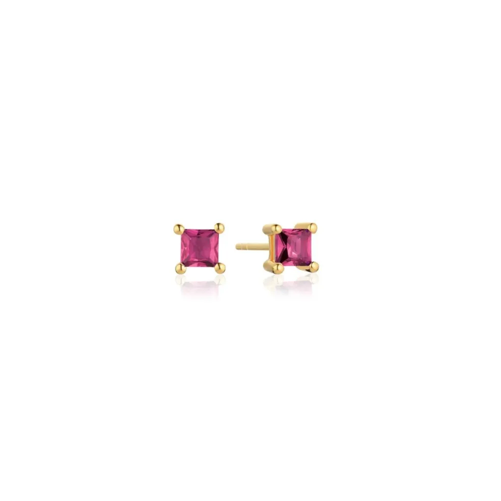 Örhängen i 18 karat förgyllt Sterlingsilver med polerad yta och handplacerad facettslipad rosa zirkon.