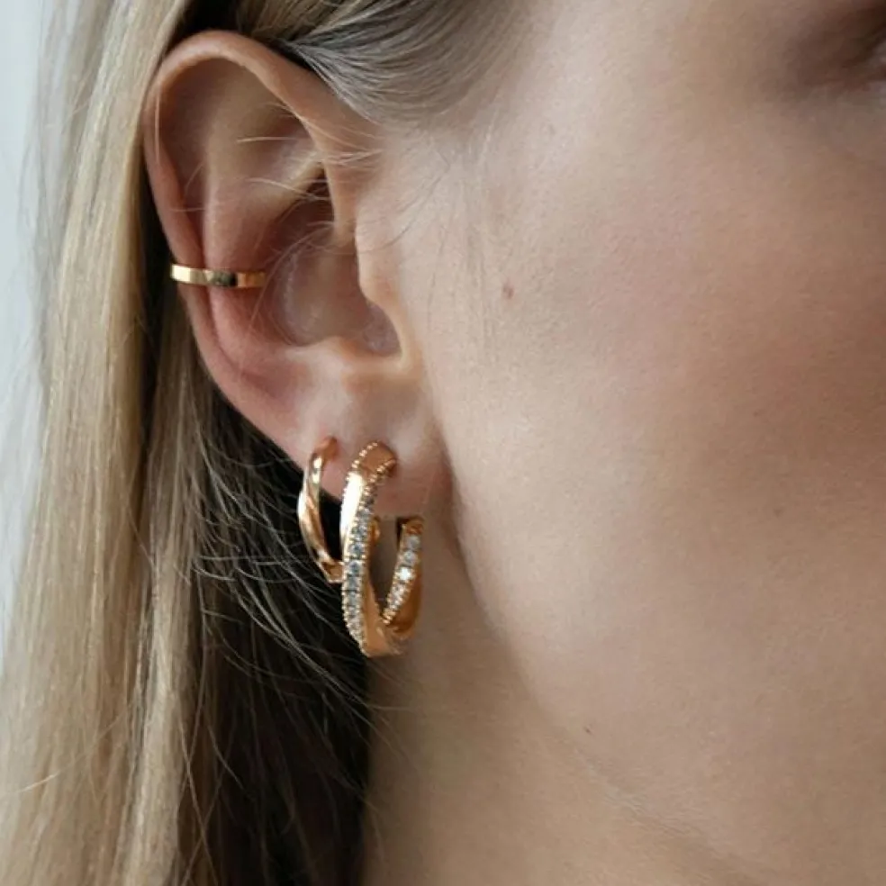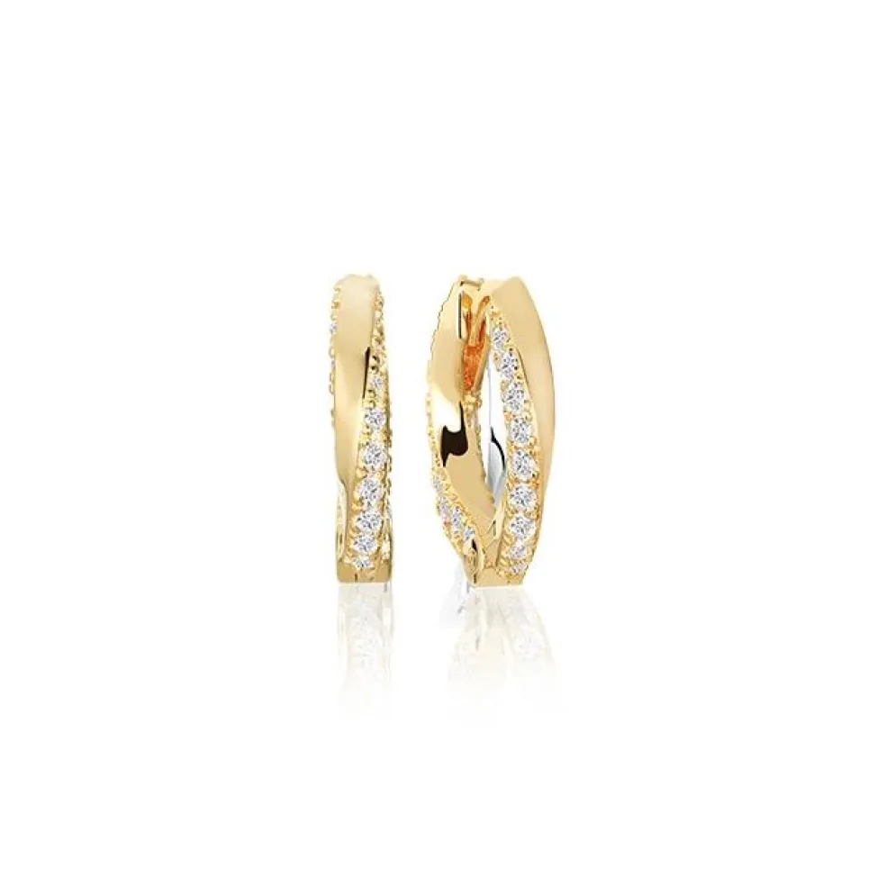 Eleganta örhängen i 18 karats guldpläterat silver med polerad yta, metallen har en vackert vriden form där dom klara cubic zirkonierna glänser fint.