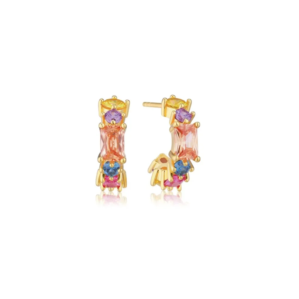 Örhägen i 18 karat förgyllt Sterlingsilver med polerad yta och handplacerade facett- och smaragdslipade flerfärgade zirkoner.
