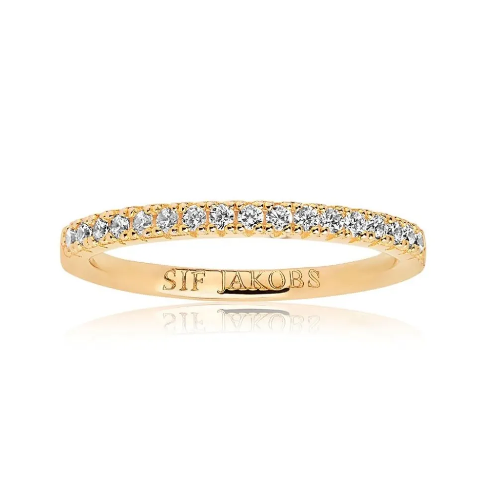Ring i 18 karats guldpläterat sterlingsilver med polerad yta och fasetterade zirkoner i klar färg.