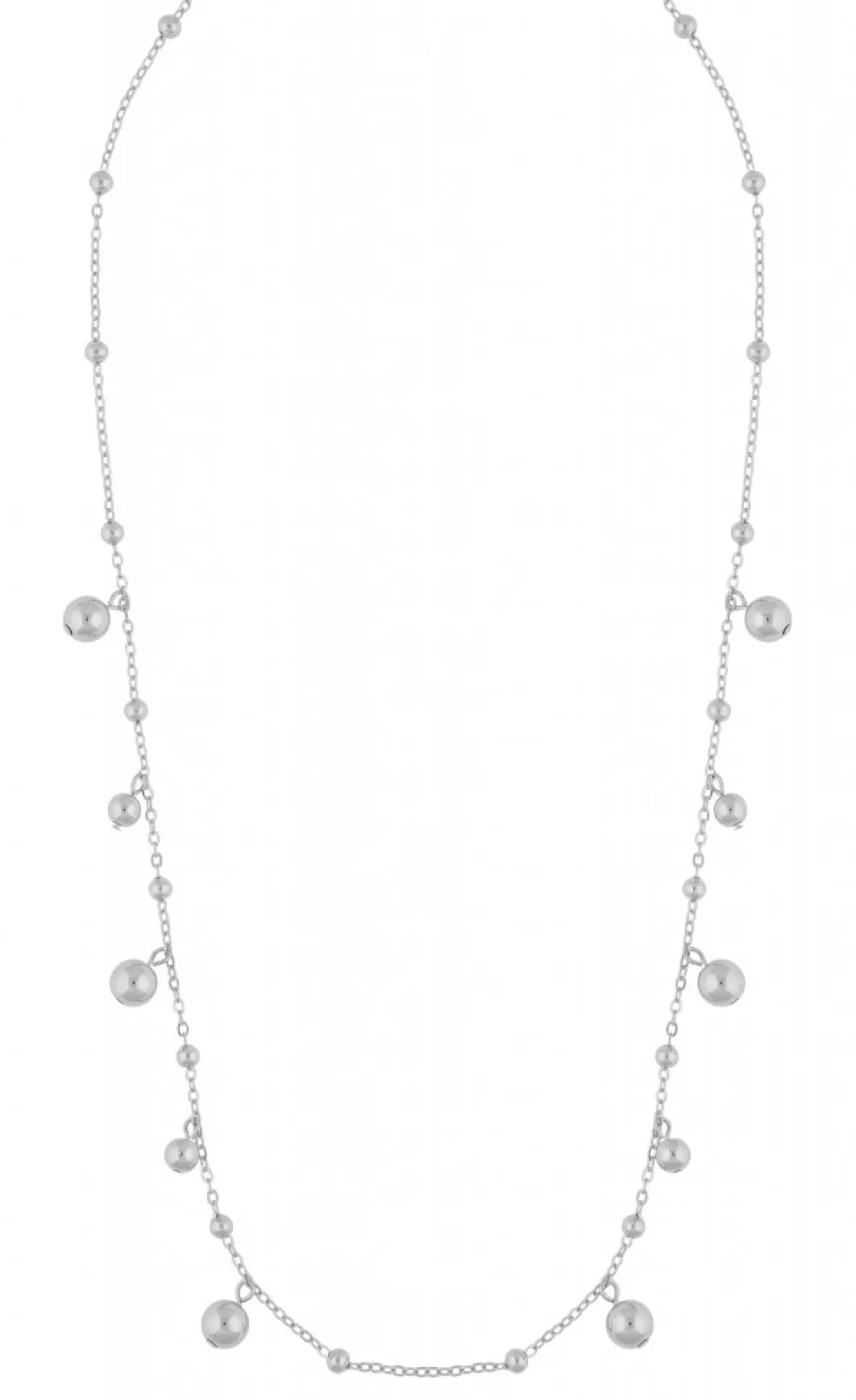 Ett fint halsband i silverplätering med små kulor på som passar utmärkt att matcha med andra halsband för att få en lager på lager känsla.