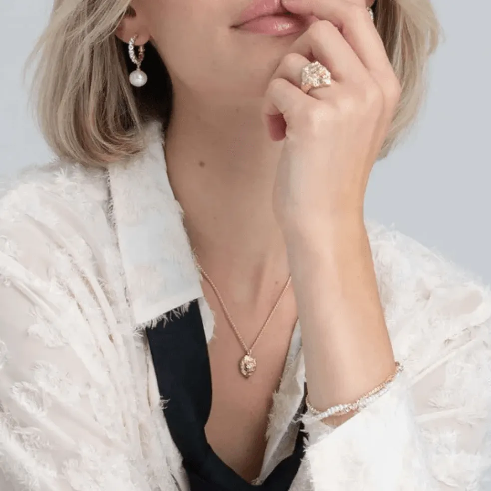 Läckert halsband med ett hänge i form av ett lejonhuvud. Halsbandet kommer från Snö of Sweden.