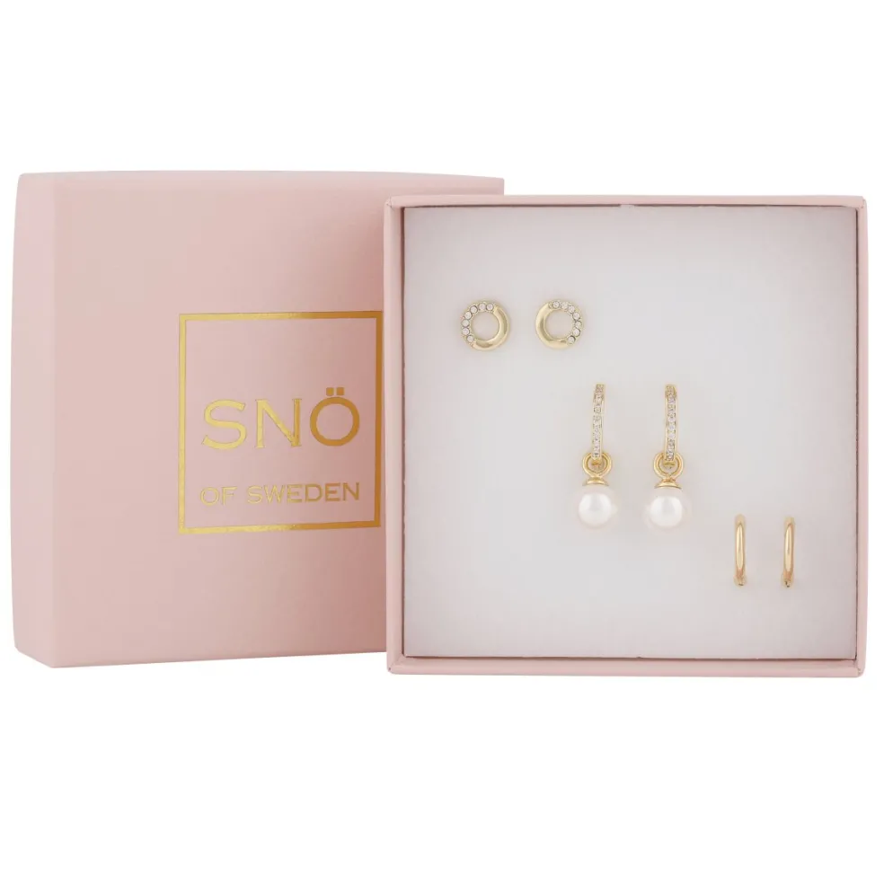 Detta prisvärda set från Snö of Sweden erbjuder tre par örhängen som kombinerar elegans och variation i ett enda paket.