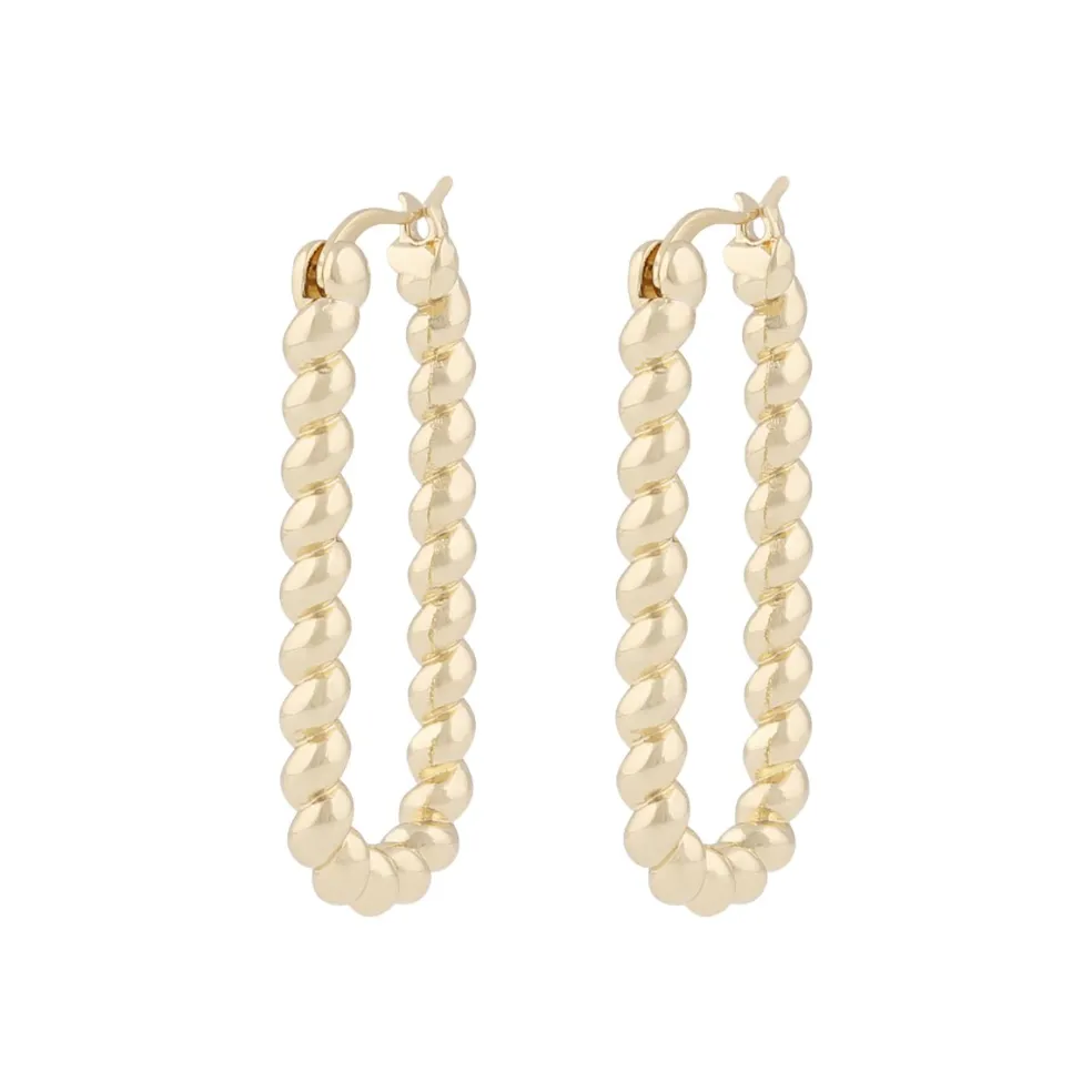 Dessa unika örhängen är tillverkade i en vriden design och ger dig ett unikt inslag i din smyckessamling. Örhängena är gjorda av guldpläterad mässing och är både stilrena och tåliga. Med sin storlek på 3,9cm är de den perfekta accessoaren som lyfter vilken outfit som helst.