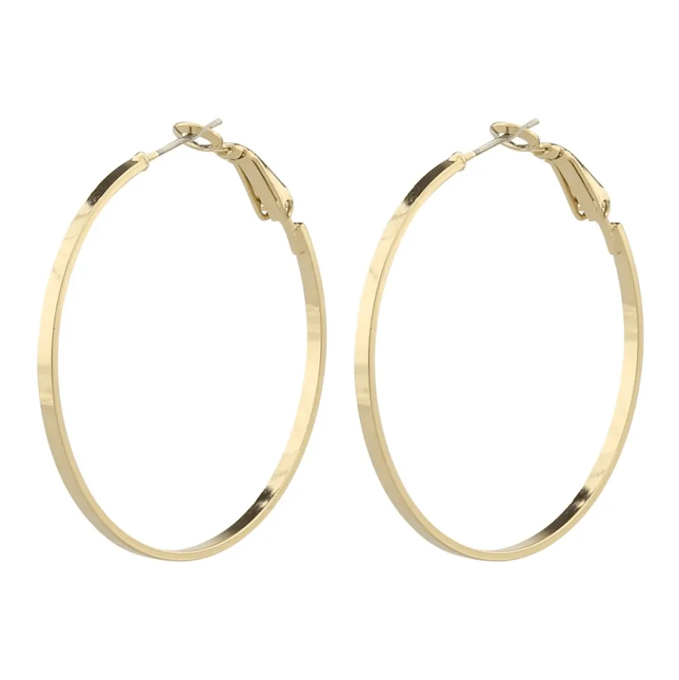 Ett par guldfärgade klassiska stora creolörhängen från Snö of Sweden. Örhängena har ett stift i stål.