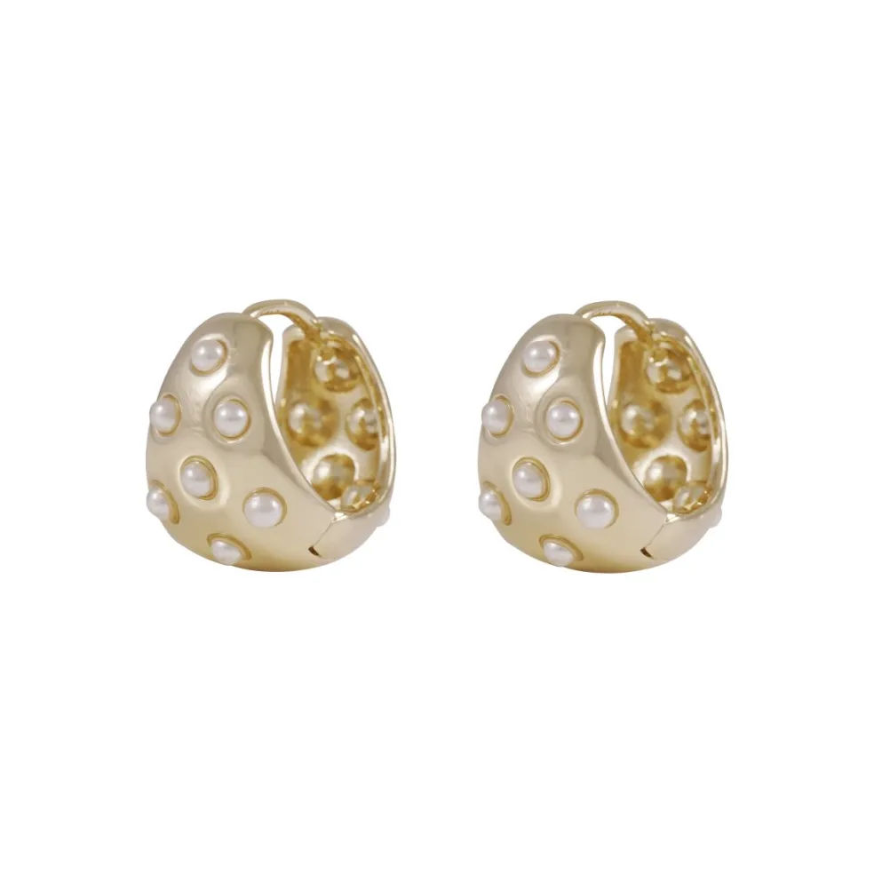 Eleganta hoops örhängen med vita pärlor från Snö of Sweden.