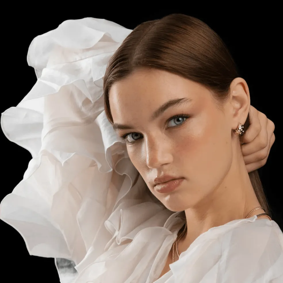 Modell; Soap Pearl Oval Ring Ear Gold.
