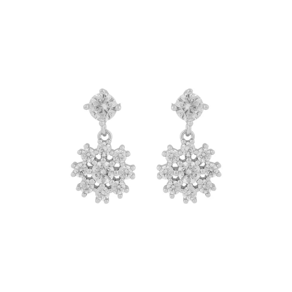 Den silverpläterade metallen förstärker kristallernas kalla, klara lyster och ger örhängena en elegant karaktär. Perfekta för att sätta en gnistrande touch på vintergarderoben, passar dessa örhängen lika bra till en avslappnad vardagslook som till en glamorös kvällsoutfit.