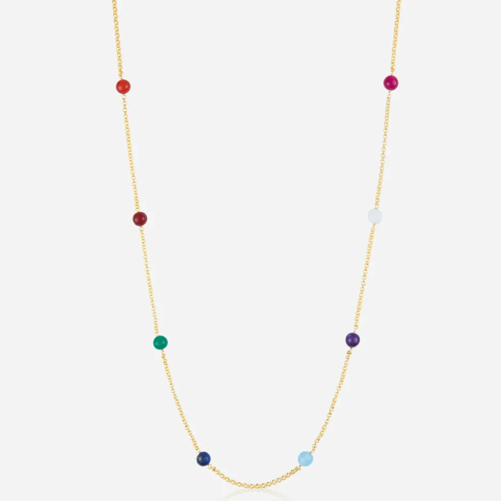 Varje sten på detta halsband – Vit Agat, Kalcedon, Rosa Kvarts, Lila Ametist, Ljusblå Kalcedon, Orange Karneol, Blå Lapis Lazuli, Gul Agat, Grön Agat och Röd Agat – symboliserar en specifik rättighet som varje barn förtjänar enligt FN;s barnkonvention.