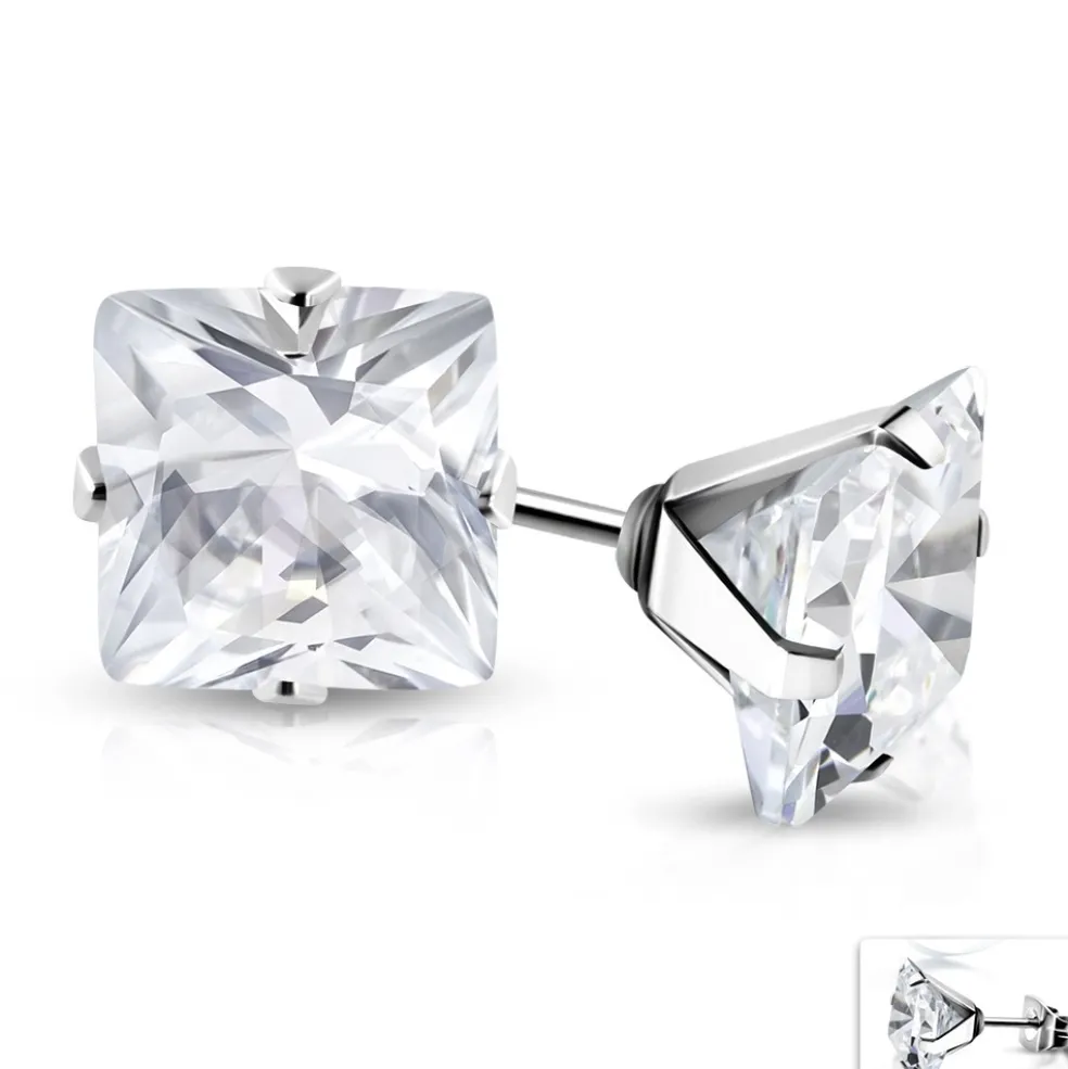 Hudvänliga örhängen tillverkade med stift i stål samt med en fyrkantig kristall. Passar utmärkt även till killar.