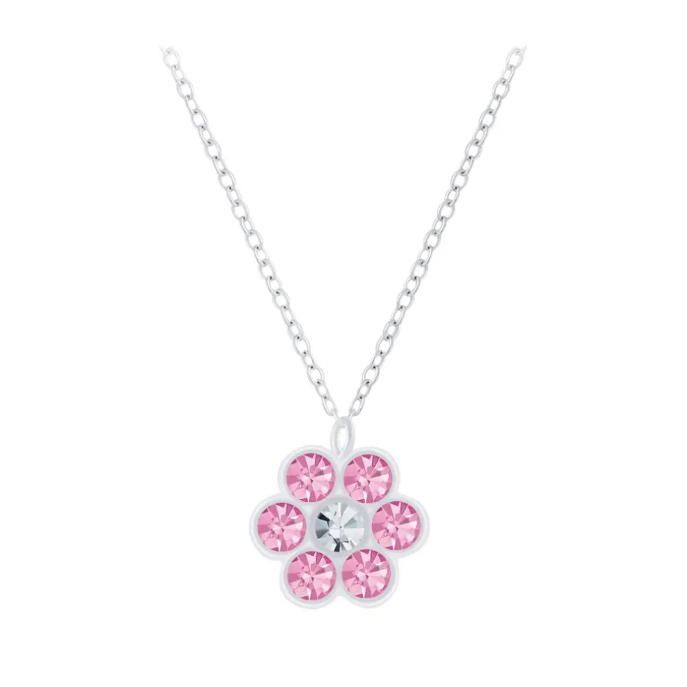 Alla The Botildas smycken är allergivänliga och helt säkra för både barn och vuxna, just detta halsband är tillverkat i äkta silver och blomman är klädd med små kristaller.