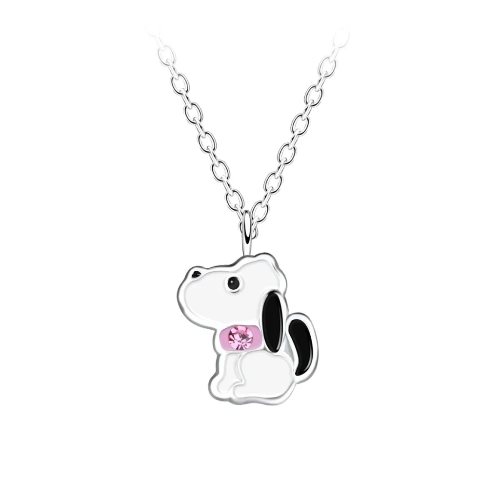 Ett charmig och lekfullt halsband i äkta silver, prytt med en söt hund i flerfärgad emalj!
