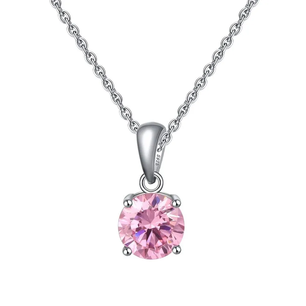 Halsband i äkta silver med en rosa Cubic Zirkonisten i kloinfattning, stenen är i AAA-kvalité och gnistrar fint.