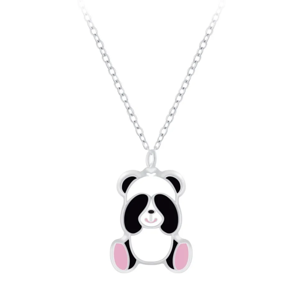 Silvret har smyckats med vita, svarta och rosa färginslag av emalj för att få fram den gulliga nalledesignen. Smycket håller mycket hög kvalitet och passar bra både för barn och vuxna. Det går att justera kedjans längd från 36 till 40 cm för perfekt passform.