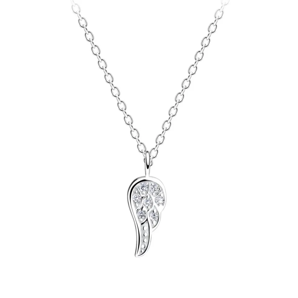 Nätt halskedja med en liten kristallklädd änglavinge på, allt tillverkat i äkta silver.