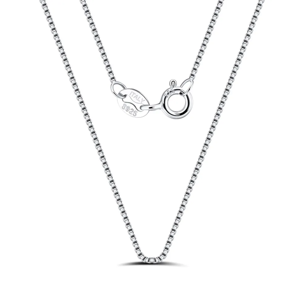 Halskedja av så kallad Box modell eller som det också kallad Venetiansk modell, tillverkad i äkta silver.