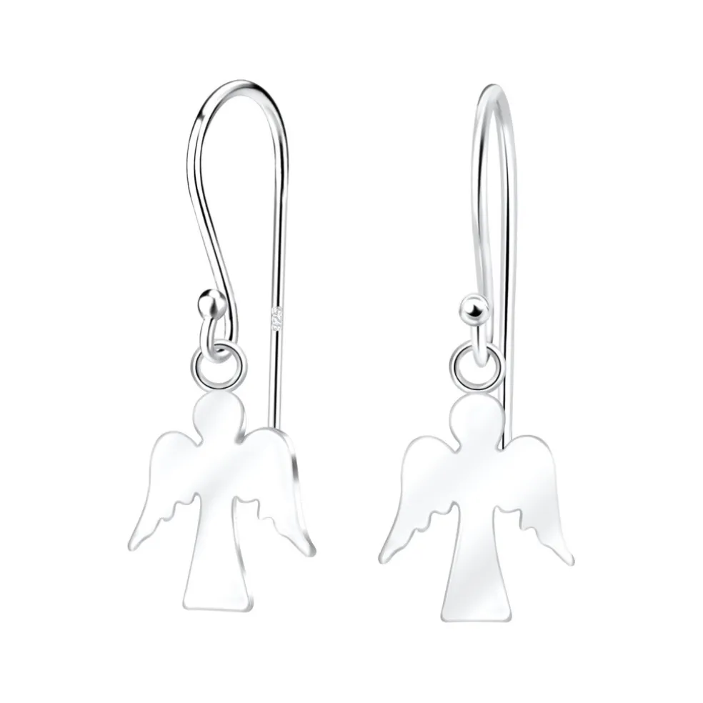 Örhängen på krok med en liten skyddsängel på, allt tillverkat i äkta silver.