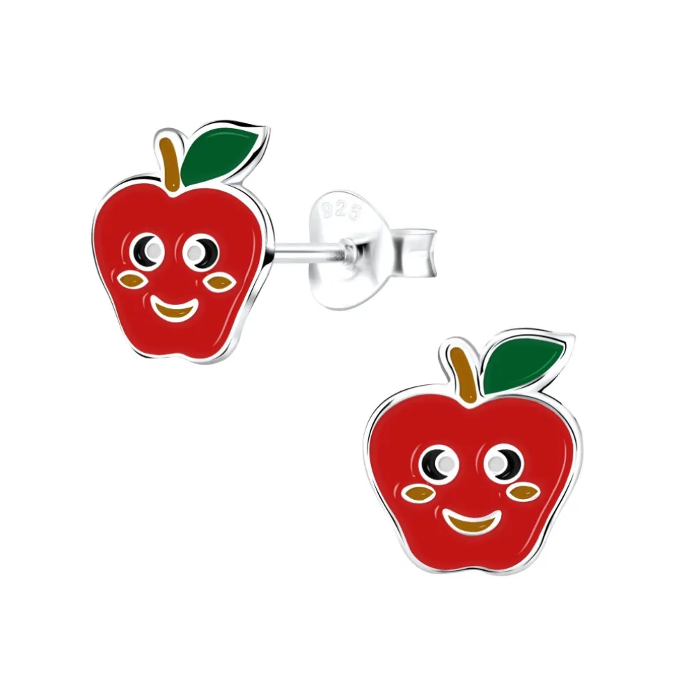 Örhängen i äkta silver i form av ett rött äpple som vekligen gör en glad.