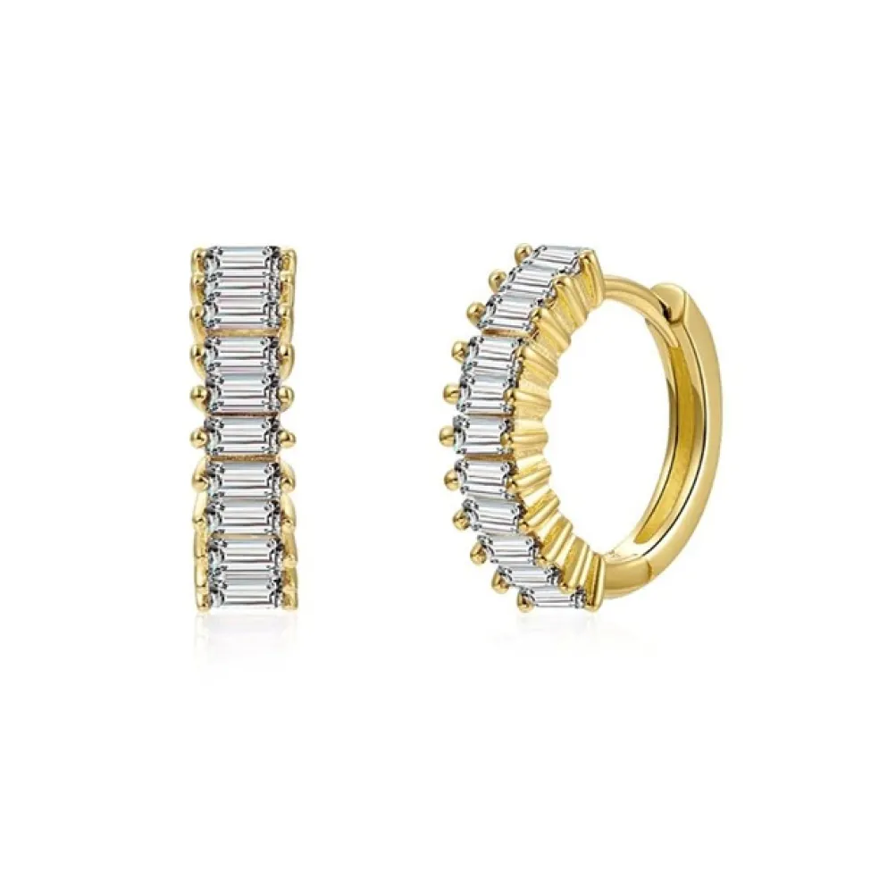 Eleganta creolörhängen i guldpläterat silver med 11 stycken klara kristaller på, modellen heter Baguette och kommer från varumärket The Botilda.