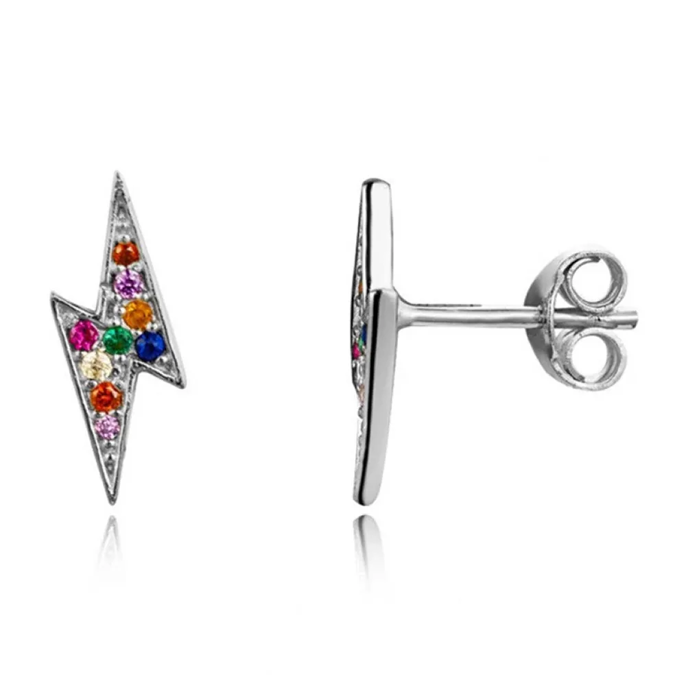 Upptäck The Botilda;s bedårande små blixtformade örhängen i äkta silver, smyckade med sprakande multifärgade kristaller för en touch av lekfullhet och färg till din stil.