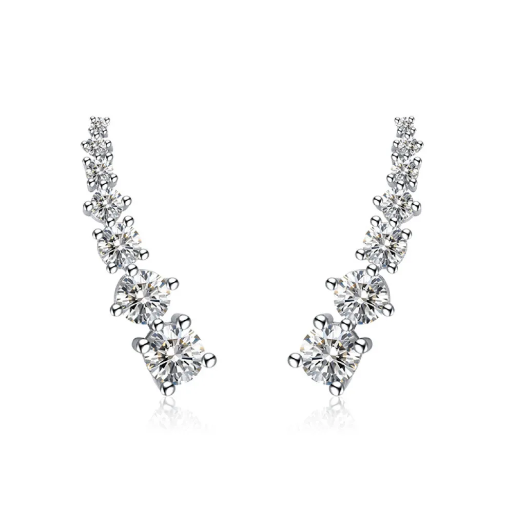 Ett fantastisk par så kallade climbers som klättrar upp efter örat, här i äkta silver med sju stycken klara kristaller på.