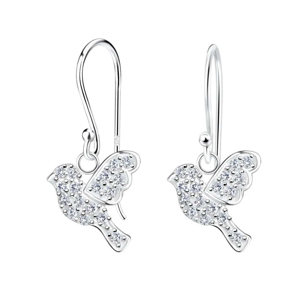 Örhängen på krok med en kristallklädd fredsduva på, allt tillverkat i äkta silver.
