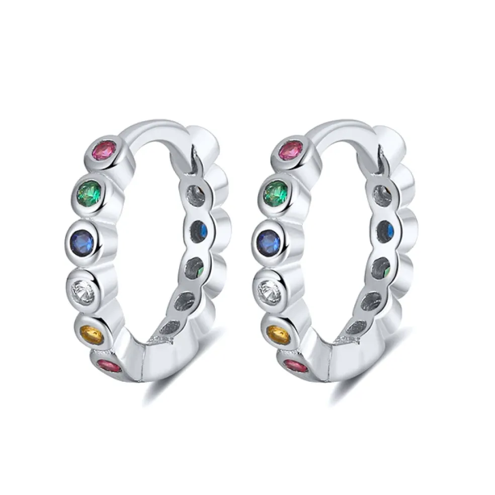 Utsökta ringörhängen i äkta silver med kristaller i mixade färger på, modellen heter Exquisite och kommer från varumärket The Botilda.