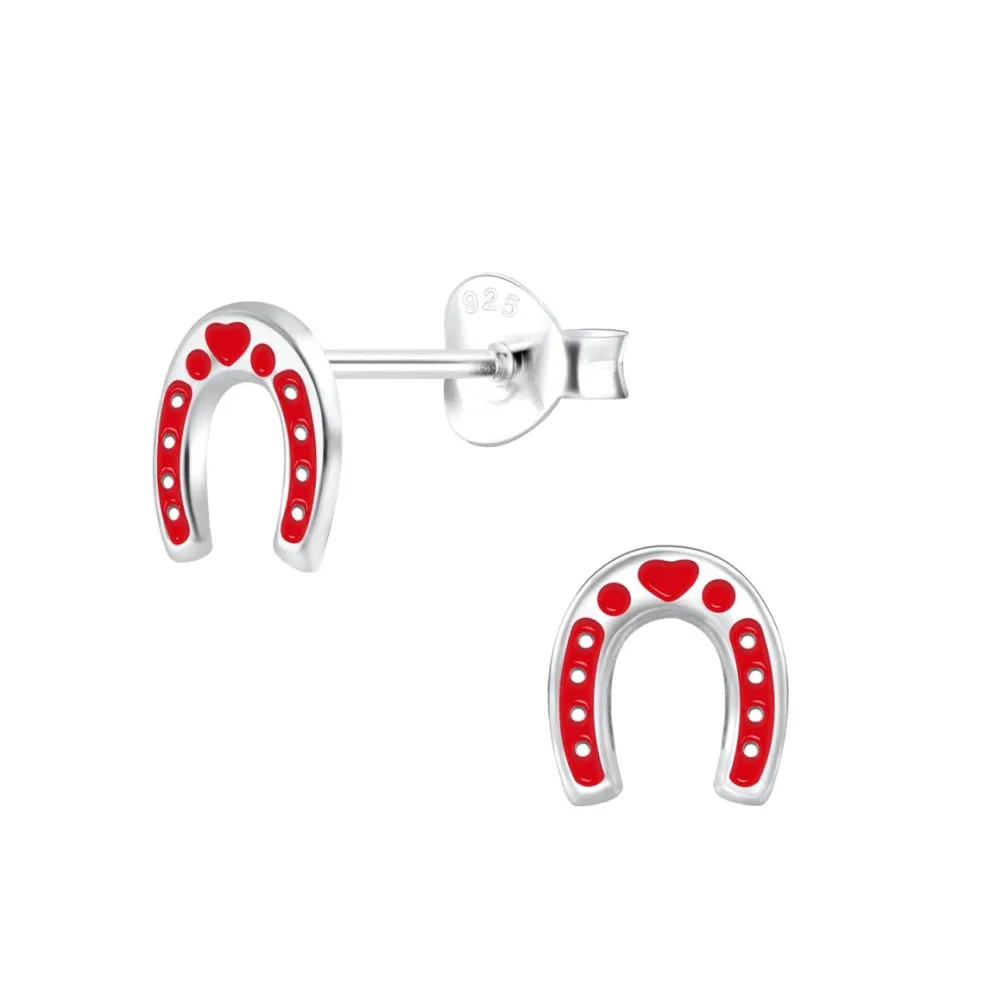 Dessa örhängen är tillverkade i äkta silver och har en bedårande hästsko i röd emalj som pryder varje öra. Som en extra charmig detalj finns ett litet hjärta inbäddat i hästskon, vilket ger örhängena en ännu mer kärleksfull och unik känsla.