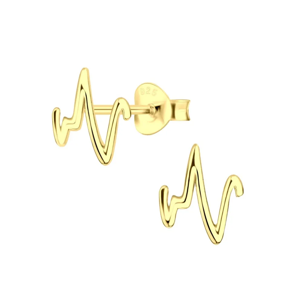 Örhängen i guldpläterat silver i form av en så kallad "heartbeatlinjeikon" eller som vi säger på Svenska, hjärtslags linje.