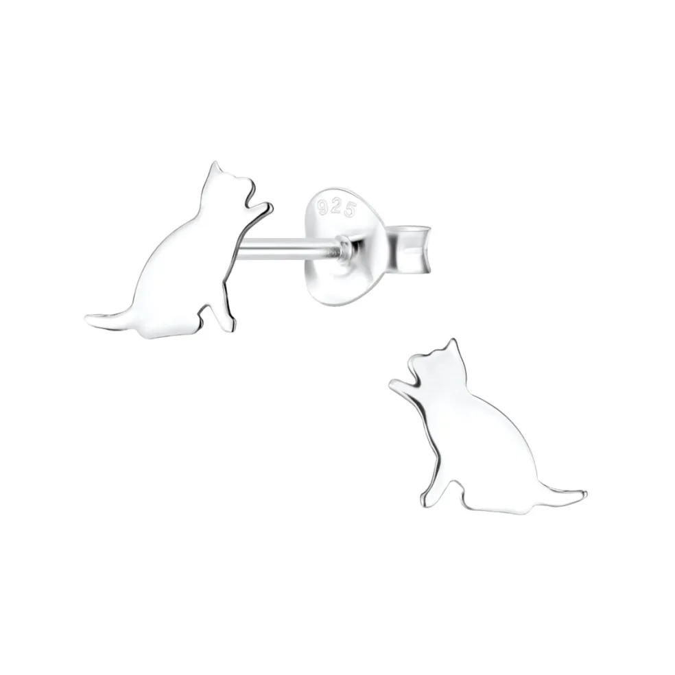 Ett par små silverörhängen med motiv av en lekande katt – det perfekta smycket för alla djurälskare!