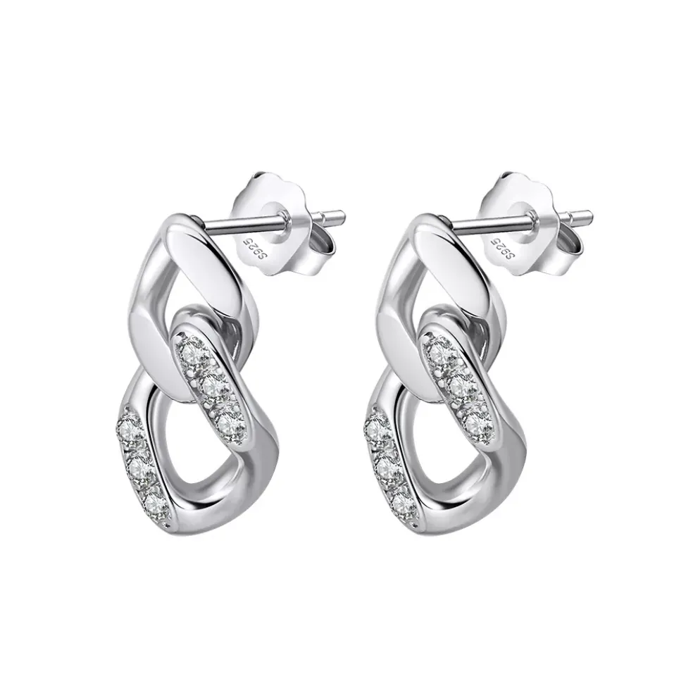 Trendiga örhängen med två sammansatta kedjelänkar. På den större länken sitter det fler små cubic zirkonier i AAAA-kvalité.