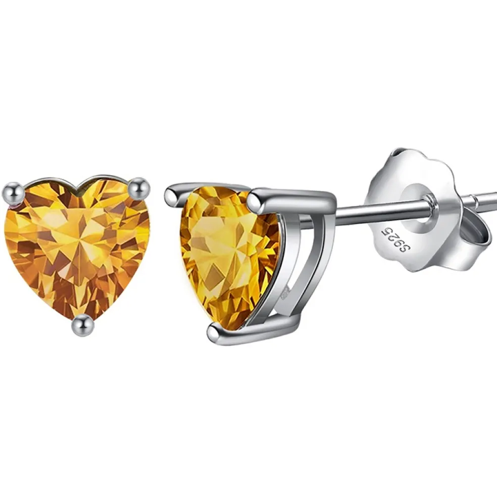 Modell; Heart Ear 925 Sterlingsilver Yellow Topaz November.