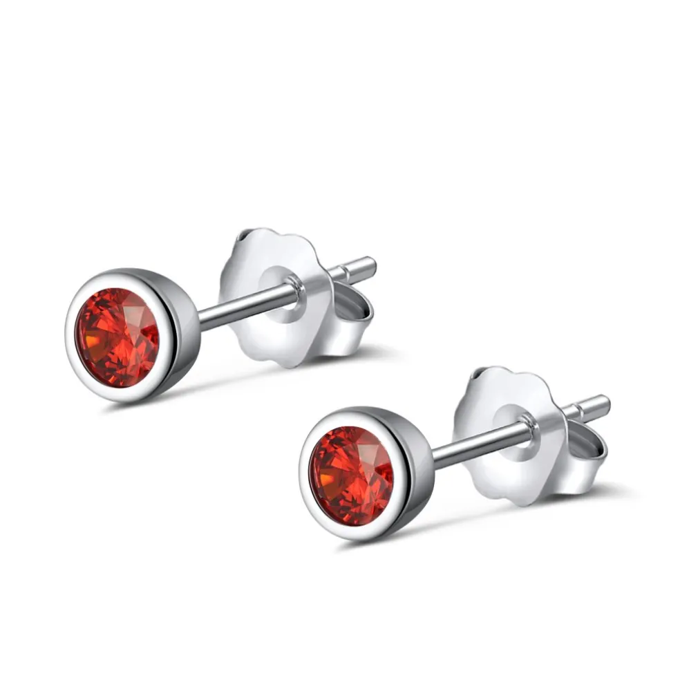 Små stiftörhängen i äkta silver med en röd Cubic Zirkoniasten, stenen är i AAA-kvalité och gnistrar fint.