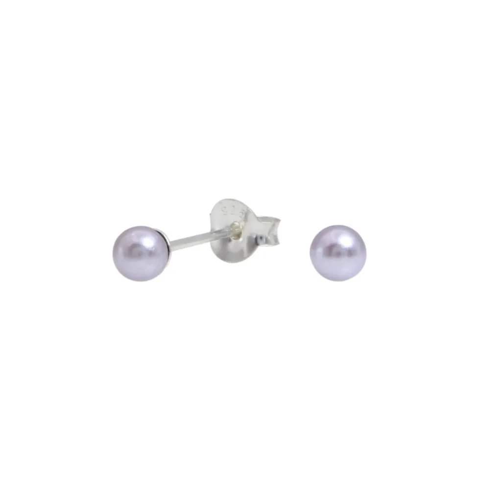 Små pärlörhängen i ljusgrått med stift i äkta silver.