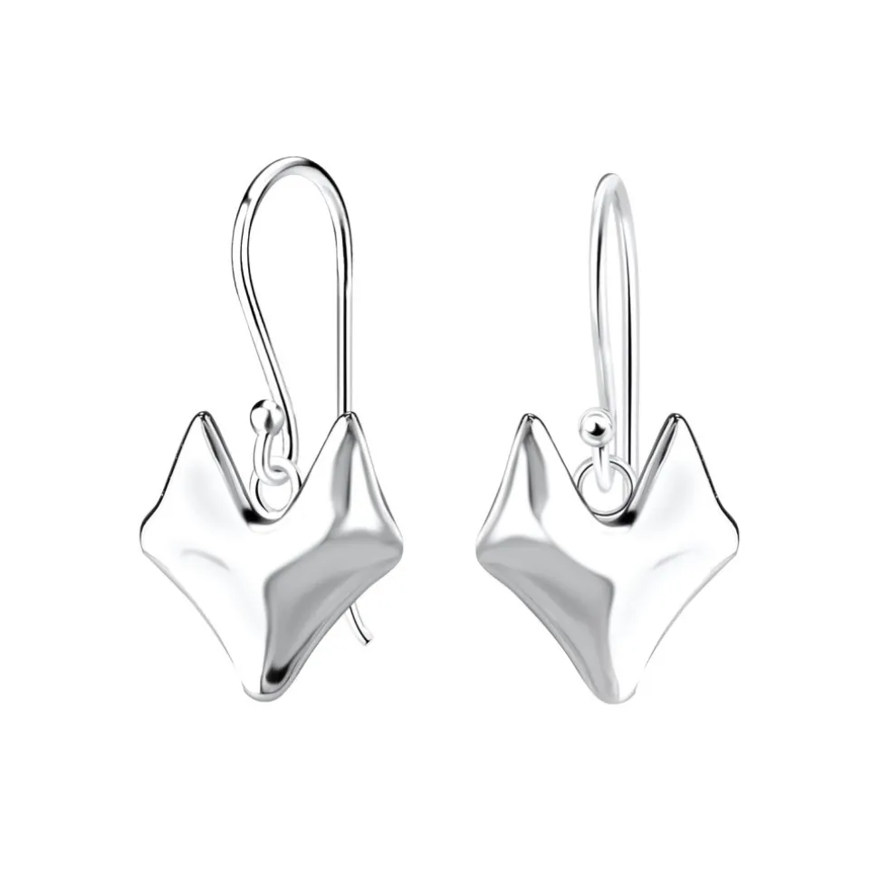 Örhängen på krok med konturen av en räv på, allt tillverkat i äkta silver.