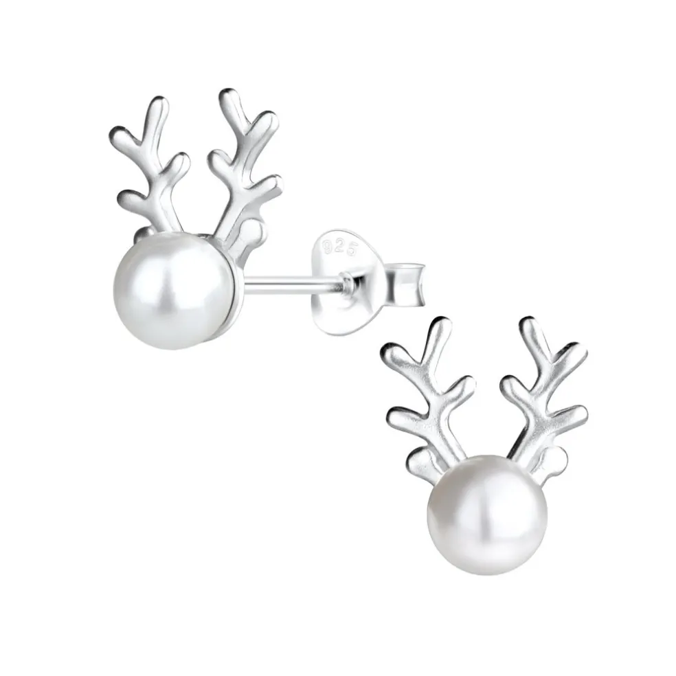 Kolla in dessa söta örhängen i äkta silver med en vit pärla på. Motivet är inspirerat av våra Svenska renar som strövar i ett vitt vinterlandskap.