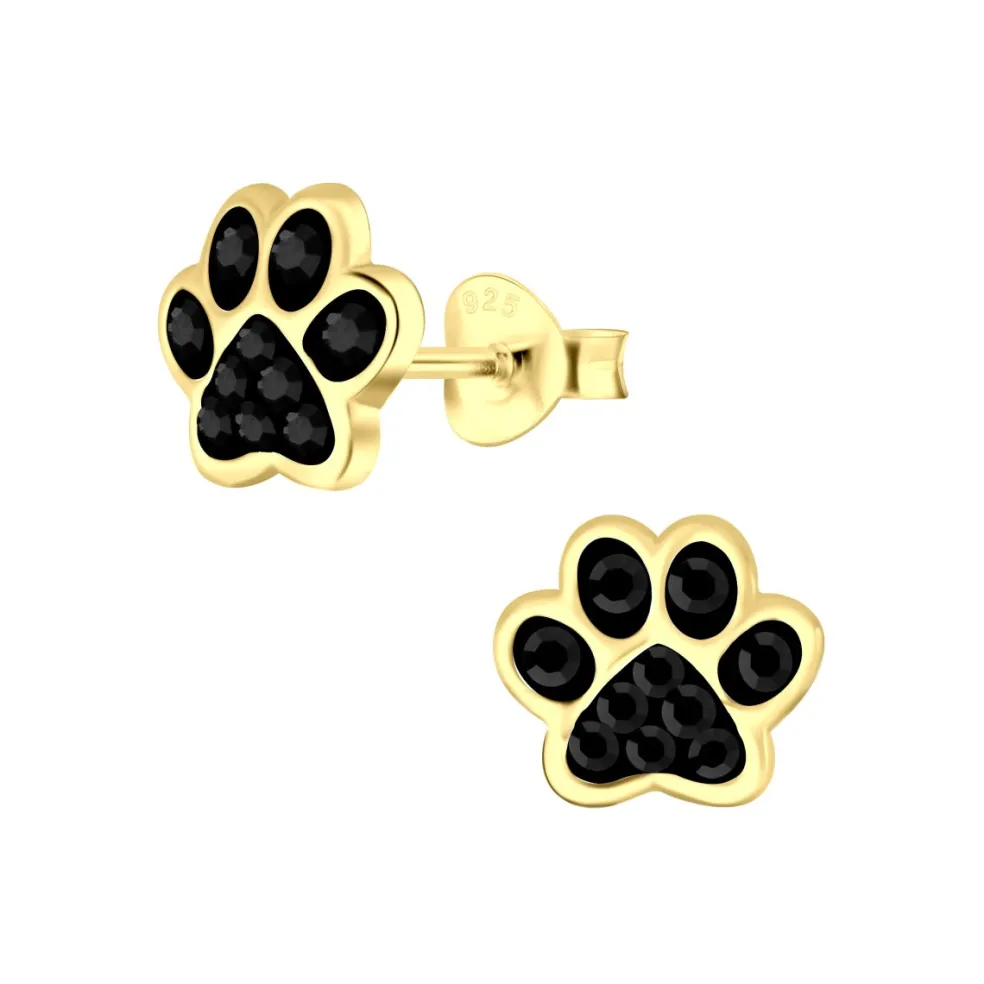 Gnistrande tassörhängen med svarta kristaller, tillverkade i 18 karats guldpläterat silver.