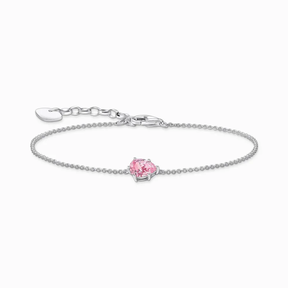 Med sin tidlösa design är detta armband den perfekta accessoaren för att fullända varje look, oavsett om du klär dig för en dag på kontoret eller för en avslappnad eller elegant kväll ute. Armbandets mittpunkt är en förtrollande rosa, droppslipad zirkoniasten som fångar ljuset på ett sätt som garanterar att du drar alla blickar till dig.