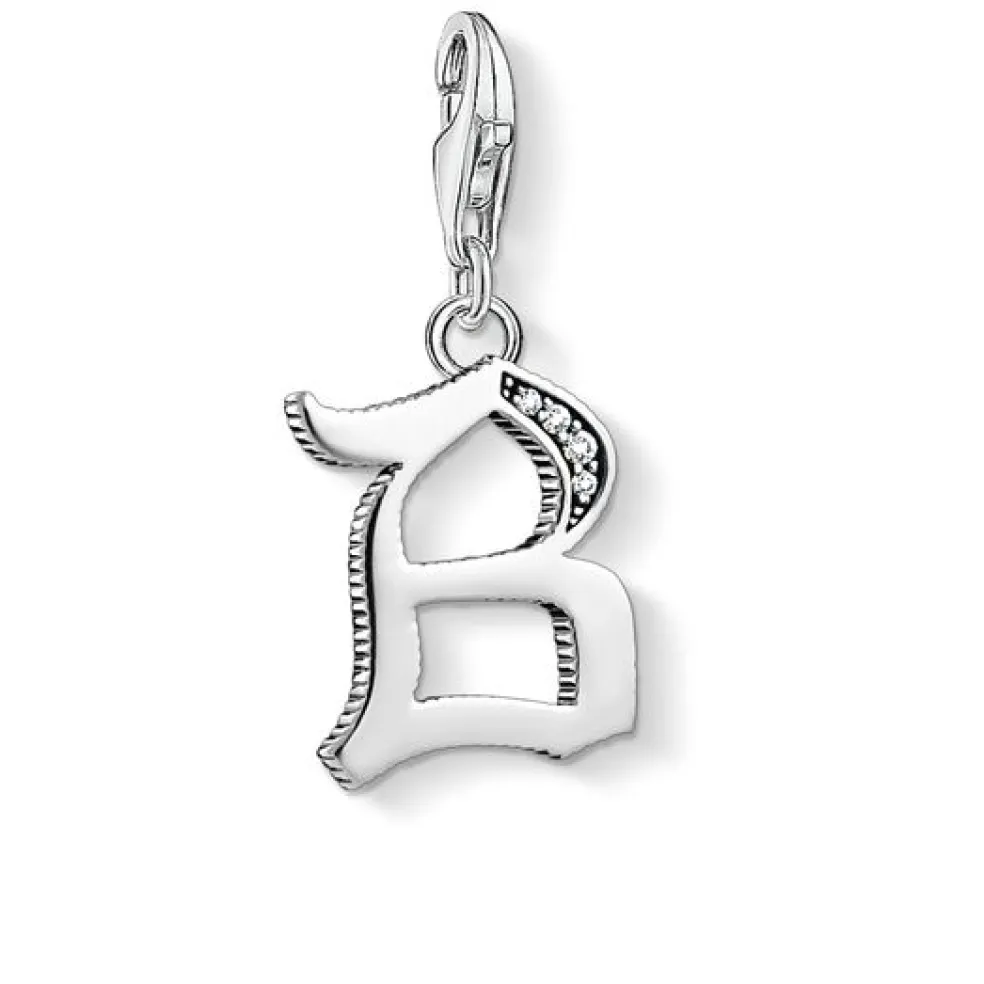 Bokstavsberlock B med karbinhake som är lätt att fästa på armband eller halsband. Berlocken kommer från varumärket Thomas Sabo.