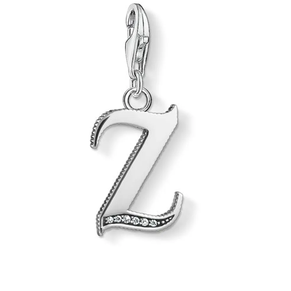 Bokstavsberlock Z med karbinhake som är lätt att fästa på armband eller halsband. Berlocken kommer från varumärket Thomas Sabo.
